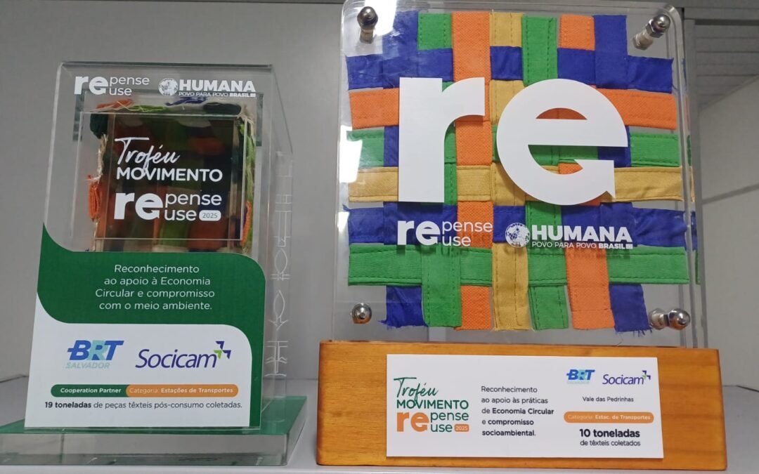 O BRT Salvador foi destaque numa iniciativa que vai além do transporte e reforça o compromisso com a sustentabilidade. O sistema recebeu dois troféus do “Movimento Repense e Reuse 2025”, da ONG Humana, em reconhecimento ao apoio à economia circular e ao alcance expressivo na arrecadação de peças de vestuário.