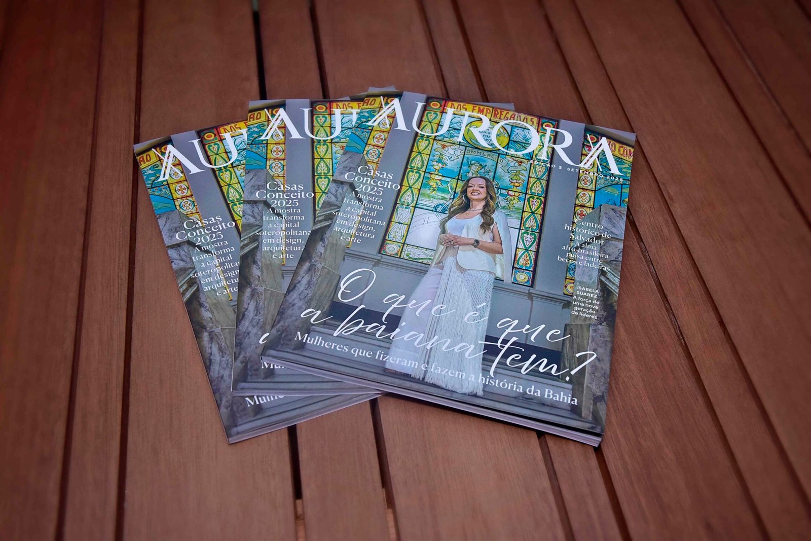 Sob a direção da empresária Tatiana Mandelli, a nova edição de Aurora traz como matéria de capa mulheres que estão fazendo história na Bahia, como Isabela Suarez, a nova voz do empresariado baiano, e Anna Telles, fundadora de uma das marcas de cosméticos mais promissoras do país, reafirmando o seu propósito de ser uma plataforma de conexão e inspiração.